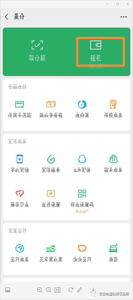 第二步:进入支付页面后,点击“钱包” 。