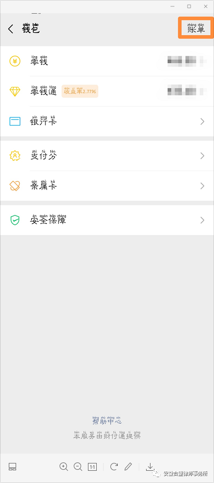第三步:进入钱包界面后,点击右上角的“账单” 。