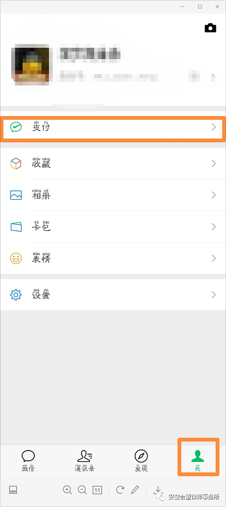 第一步:进入微信的点击“我”,然后再点击“支付”。